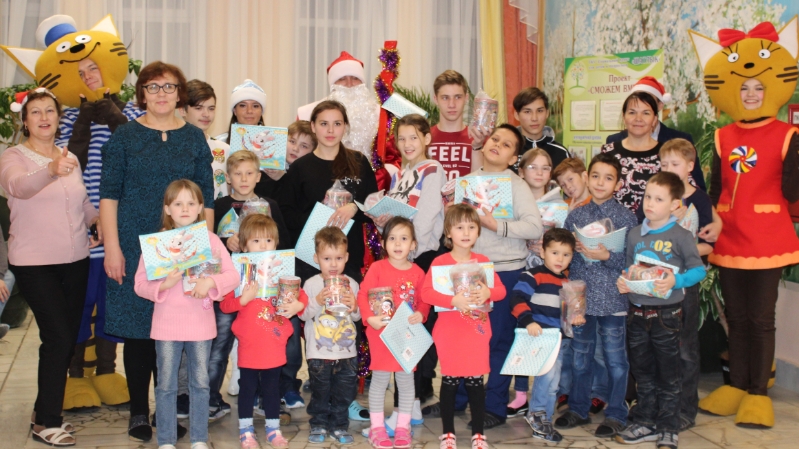 Детей порадовали сотрудники предприятия в образах Деда Мороза и Снегурочки, а также аниматоры в образе героев мультфильма «Три кота».