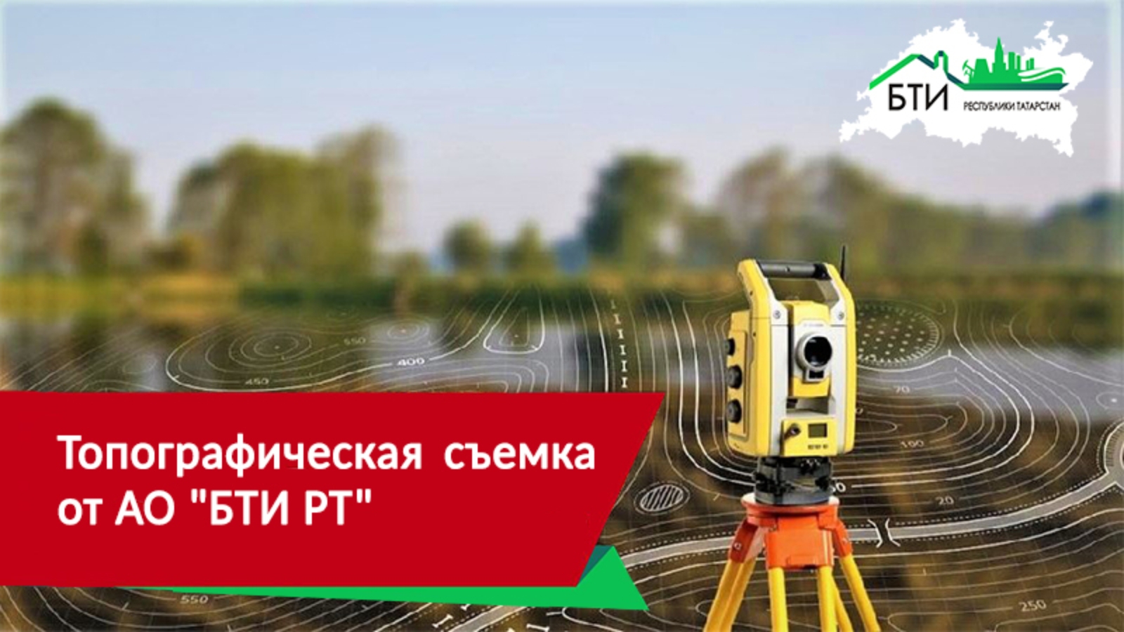 С 2020 года АО"БТИ РТ" начало развивать услугу "Инженерно-геодезические изыскания". Одно из основных направлений "Инженерно-геодезических изысканий" это топографическая съемка. Топографическая съемка — это глубокий технологический процесс, результатом которого является топографический план, детально отображающий элементы рельефа, наземные объекты, подземные коммуникации, систему высот, координат и ряд других сведений которые указываются на плане с помощью специальных условных топографических знаков. В зависимости от поставленных задач, с помощью топографической съемки можно получить план местности разного масштаба. При этом, чем крупнее масштаб, тем подробнее будет предоставлена информация о местности. Наиболее популярными остается план 1:500. Топографическая съемка выполняется инженерами-геодезистами и специальными геодезическими приборами:теодолитами,электронными тахеометрами,спутниковыми геодезическими приемниками.