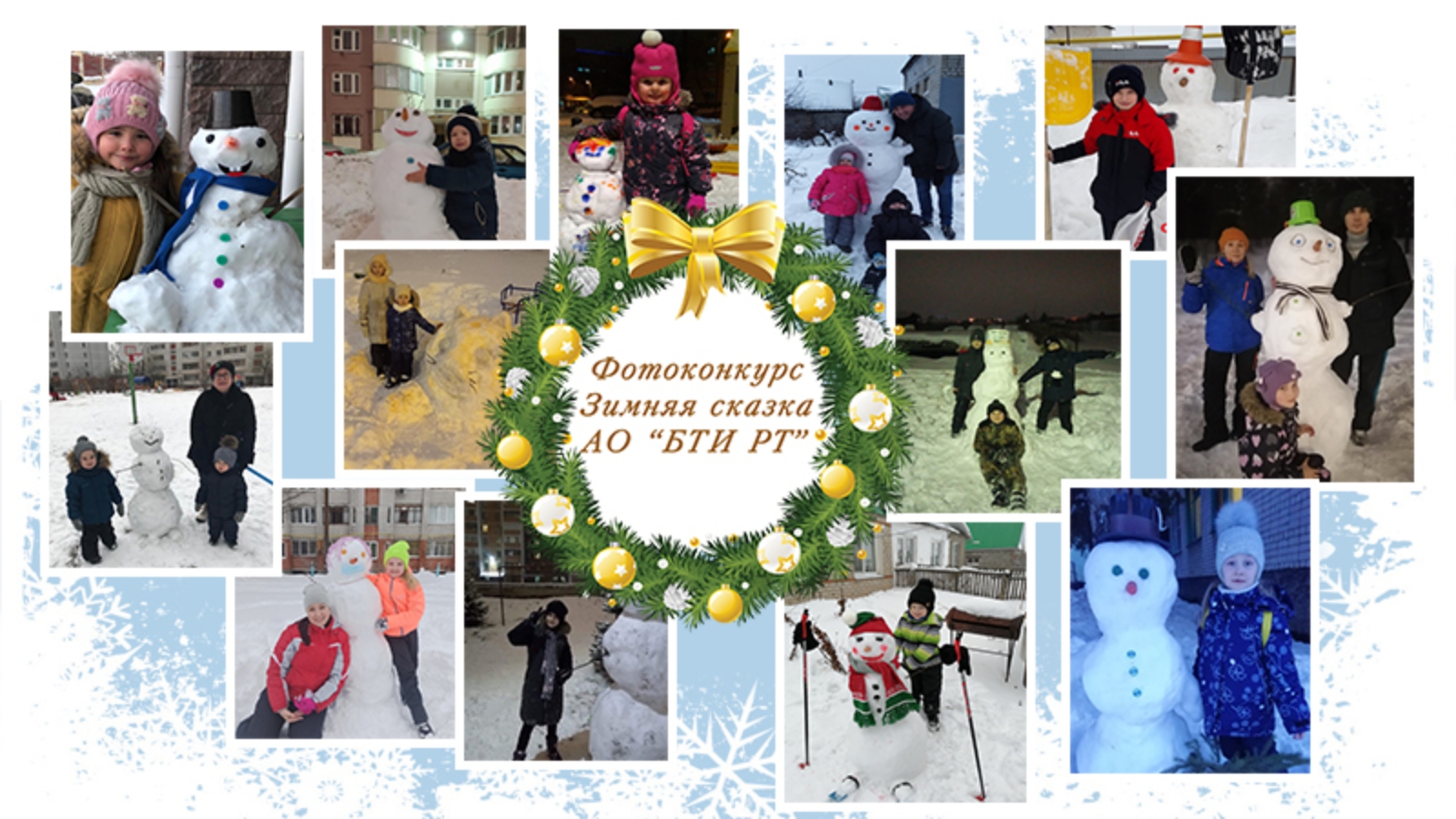 Профсоюзным комитетом АО «БТИ РТ» подведены итоги семейного фотоконкурса «Зимняя сказка» на самую лучшую, красочную и смешную снежную скульптуру. По представленным фотоработам был подготовлен видеоролик и направлен в подразделения. Все семьи-участники награждаются памятными подарками.