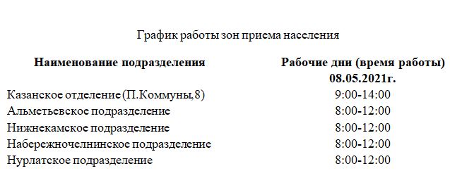 Сообщаем, Вам график работы приемных зон населения, в дни майских праздников