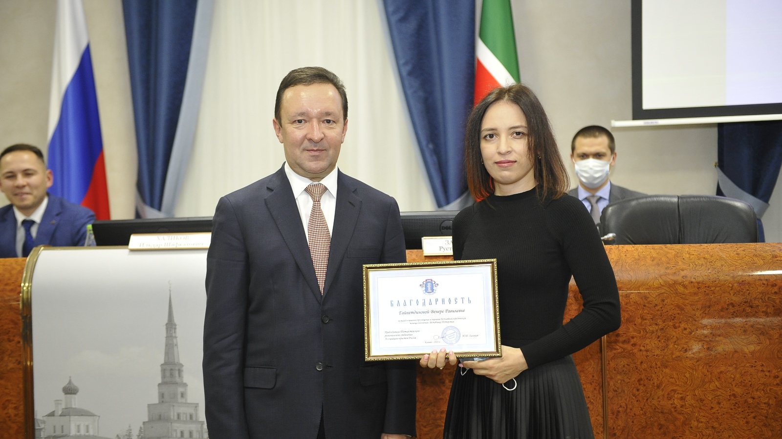 На заседании было отмечено активное участие АО " БТИ РТ в работе Ассоциации по оказанию бесплатной юридической помощи. Заместителю начальника отдела правовой работы АО "БТИ РТ" Гайнетдиновой Венере Равилевне вручили Благодарность Ассоциации за вклад в правовое просвещение граждан и оказание бесплатной юридической помощи населению Республики Татарстан.