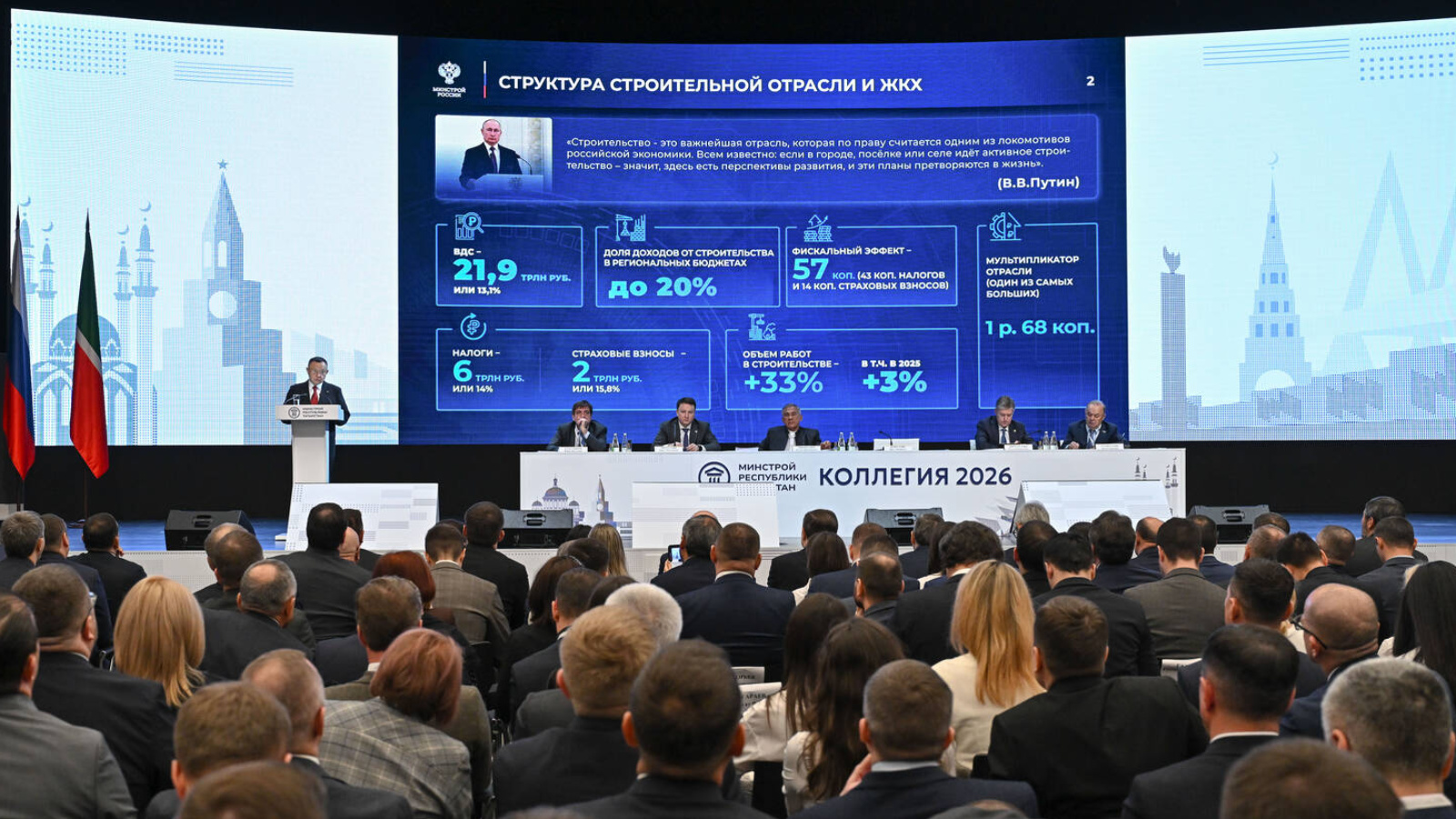 Основная тема коллегии – подведение итогов работы Минстроя РТ в 2025 году и о задачах на текущий год. Мероприятие прошло в ИТ-парке им.Б.Рамеева в г.Казани.В завершении коллегии Раис Республики Татарстан Рустам Нургалиевич Минниханов и глава Минстроя России Ирек Энварович Файзуллин вручили ряд государственных и ведомственных наград.